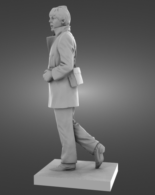 The monument is placed in Liverpool at the Pier Head, near the intersection of Brunswick Street and Canada Boulevard. It consists of four bronze statues depicting members of the Beatles, that are, from left to right, Paul McCartney, George Harrison, Ringo Starr, and John Lennon. The figures are larger than their real counterparts, and are depicted walking together through the street. They were based on a photograph of the group, taken at the location in 1963.