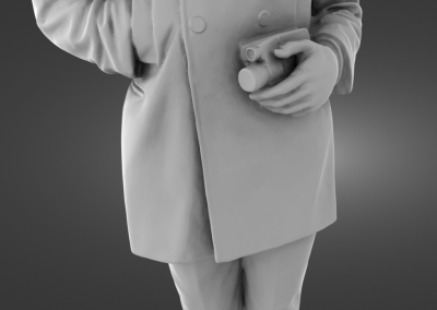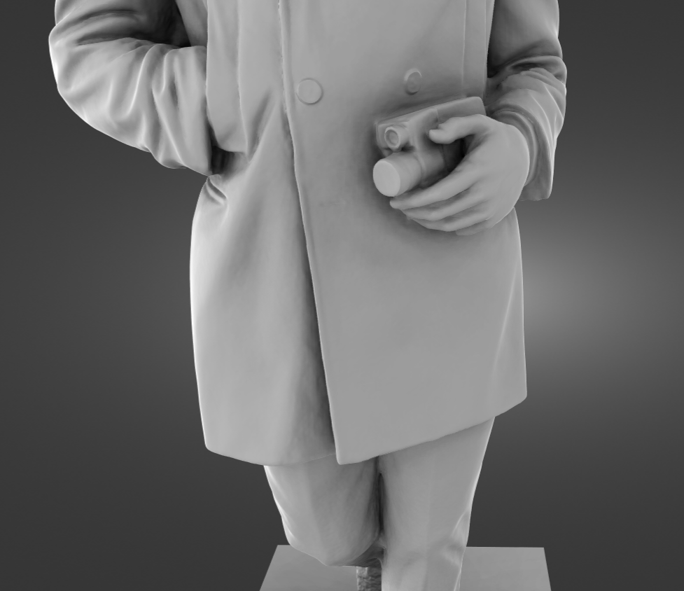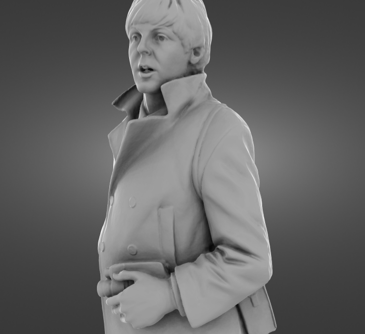 McCartney holds a camera near his chest in his right hand, as a tribute to his wife, Linda McCartney, who was a photographer.