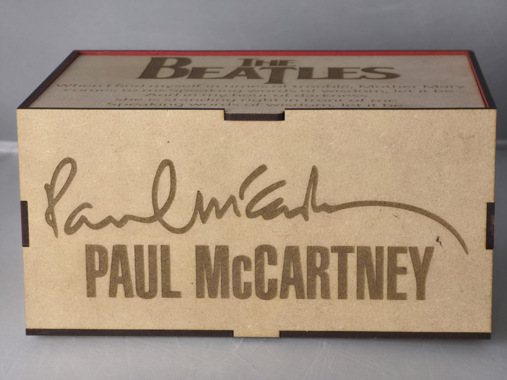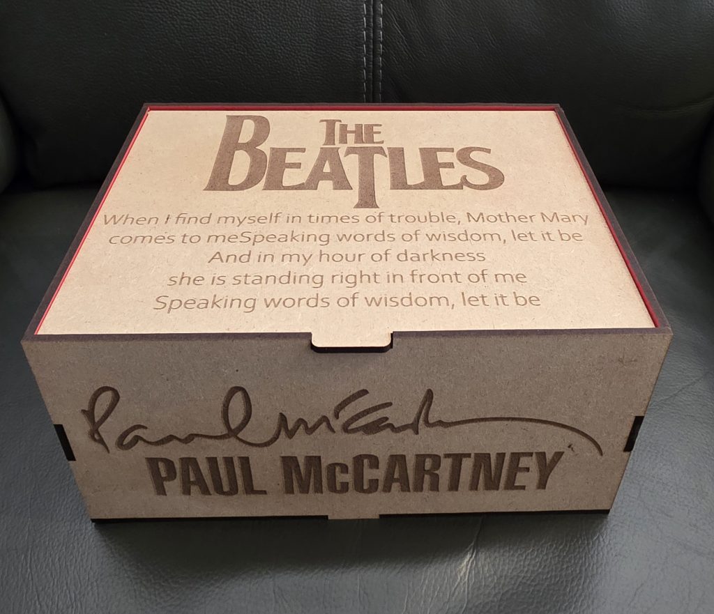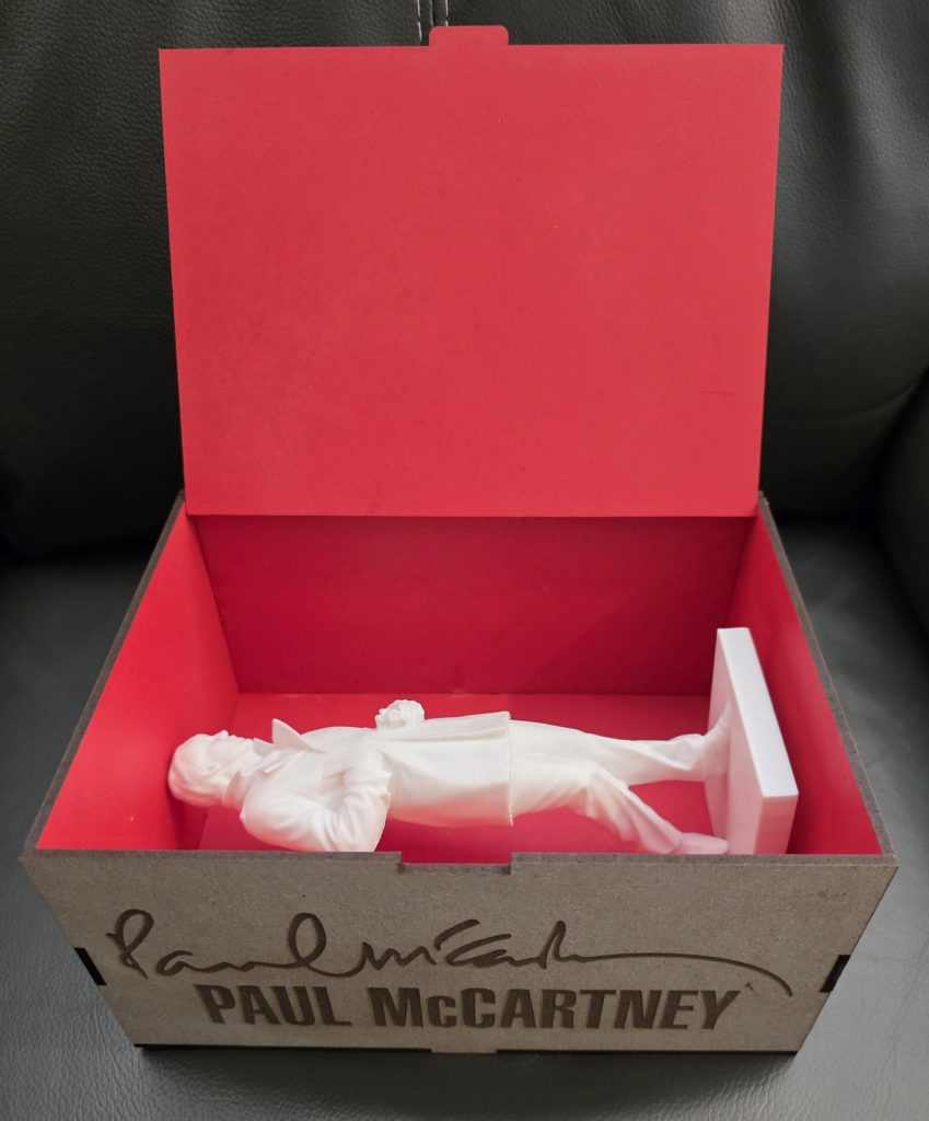 Once scanned, I brought the model into my Ender 3 V3 KE and 3D printed it, preserving the detail and character that makes McCartney instantly recognizable. To top it all off, I used the Falcon 2 22W laser to engrave a custom box with his name on it a slick finish to a unique project.Here’s the engraving in action.