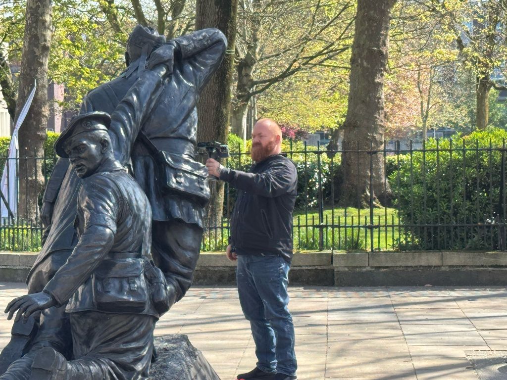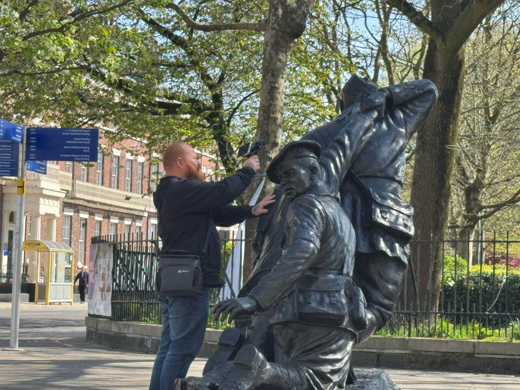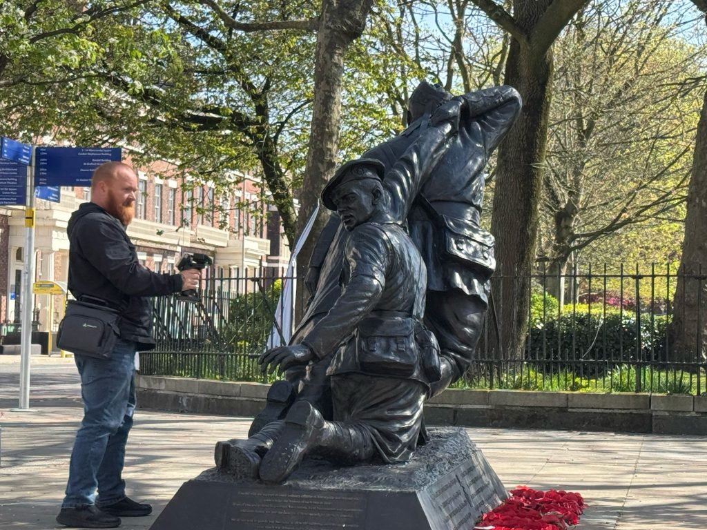 Today I scanned the Liverpool Heroes Memorial in Abercromby Square, a statue that honours Captain Noel Chavasse, one of the most decorated soldiers of WWI, and other Liverpool born Victoria Cross recipients.This one really tested me. It took just under an hour to get the scan finished. The bright sun and strong reflections made it a nightmare at times. Honestly, it almost got the better of me. But I stuck with it, adjusted my angles, and in the end I got the results I was after.The statue itself is incredibly moving. Chavasse, a medical officer, is shown helping a wounded soldier alongside a stretcher bearer from the Liverpool Scottish regiment. It’s a powerful tribute to courage, compassion and Liverpool’s wartime history.Proud to have captured it in 3D.#creality #creality3d