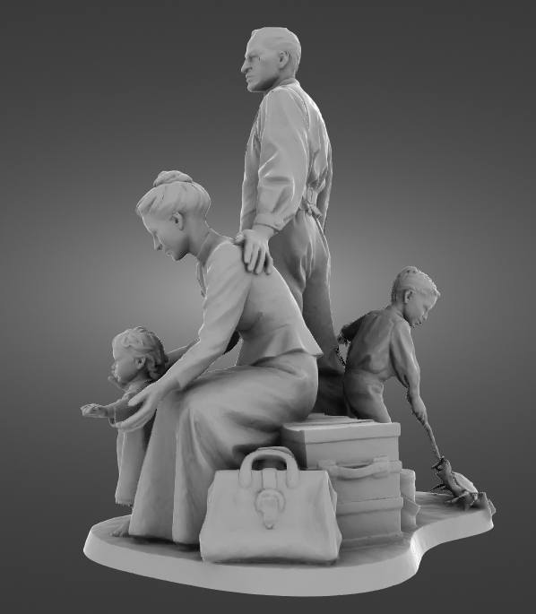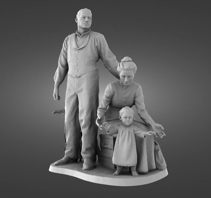 Digitizing a multi figure bronze statue outdoors is always a demanding task. The unpredictable lighting coming off the River Mersey and the complex geometry of a family huddled together with luggage require a highly capable scanner. The original Creality Otter was absolutely up to the challenge.